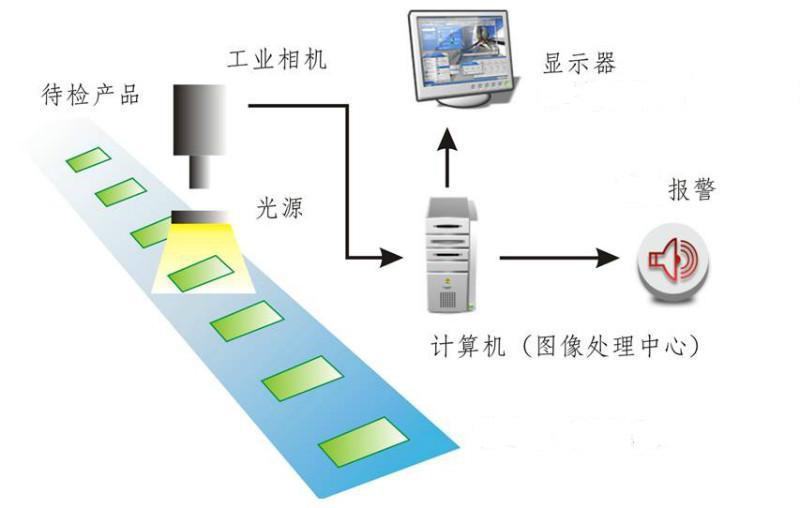 書刊教科書等印品在線錯(cuò)頁檢測是基于機(jī)器視覺的檢測系統(tǒng),就是用工業(yè)攝像機(jī)代替人眼,用計(jì)算機(jī)代替人的大腦,用工業(yè)相機(jī)采集印品的圖像,在計(jì)算機(jī)中與該印品的標(biāo)準(zhǔn)圖像進(jìn)行對比,如果發(fā)現(xiàn)不同產(chǎn)品就判斷為不合格。質(zhì)量檢測系統(tǒng)是在規(guī)定的精度條件下進(jìn)行檢測,具有速度快,精度高,非接觸、可靠性高,效率高等特點(diǎn)。
